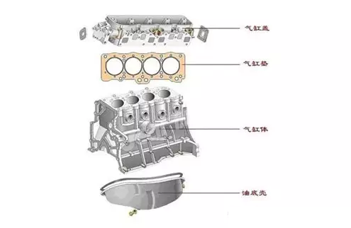 气缸盖与气缸体之间装有气缸衬垫,其作用是保证气缸盖与气缸体间的密封,防止燃烧室漏气、水套漏水。